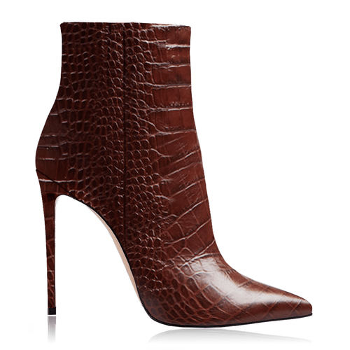 Stiefelette mit spitzer Zehenpartie im Krokodilmuster, seitlichem Reißverschluss und 100 mm oder 120 mm Stilettoabsatz