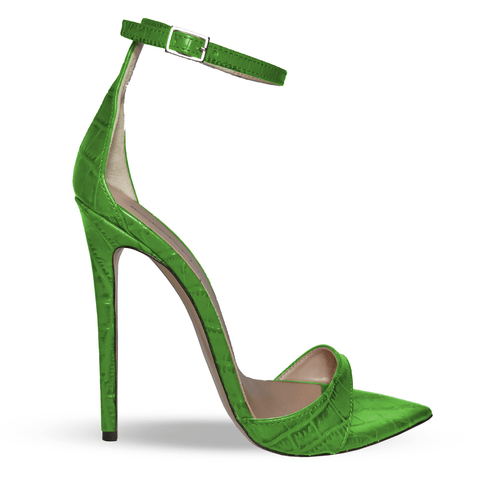 Spitzensandalette aus Krokodilleder mit verstellbarem Knöchelriemen, 100mm oder 120mm Stilettoabsatz.