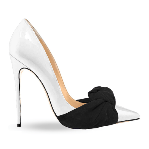 Spitz zulaufendes Dekolleté aus Lackleder mit Schleife aus echtem Wildleder, 100 mm oder 120 mm Pfennigabsatz
