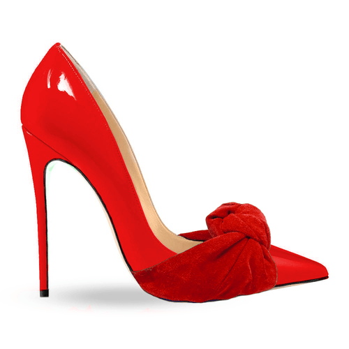 Spitz zulaufendes Dekolleté aus Lackleder mit Schleife aus echtem Wildleder, 100 mm oder 120 mm Pfennigabsatz