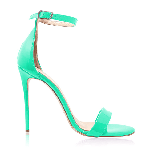 Sandale mit runder Zehenpartie und Lacklederband mit verstellbarem Fesselriemchen, 100mm oder 120mm Pfennigabsatz