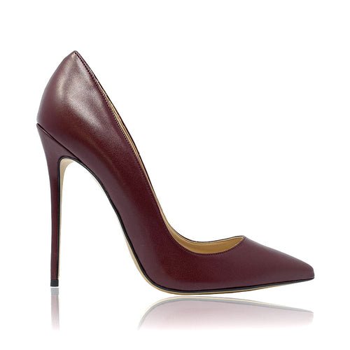 Spitz zulaufendes Dekolleté aus Leder mit 100 mm oder 120 mm Stilettoabsatz