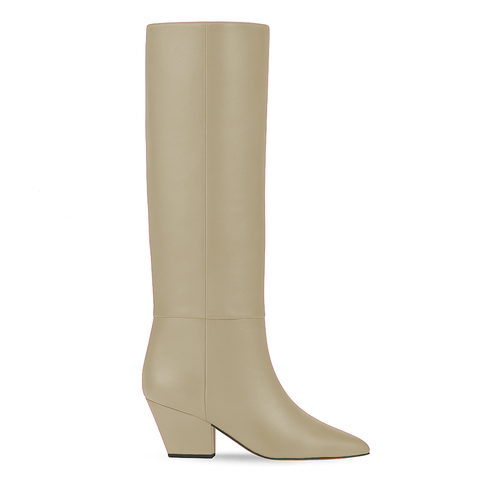Rohrstiefel unterhalb des Knies aus echtem Leder mit 60mm breitem Absatz