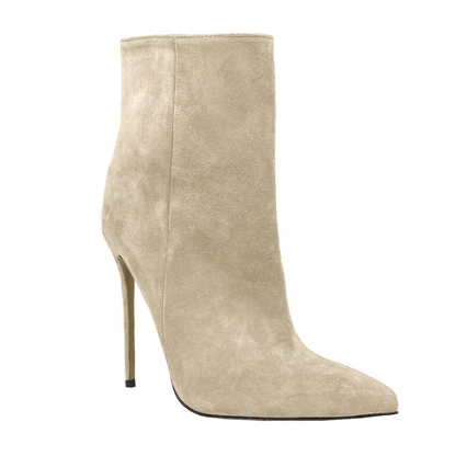 Spitzer Stiefel aus echtem Wildleder mit Innenreißverschluss und 100 mm oder 120 mm Stilettoabsatz