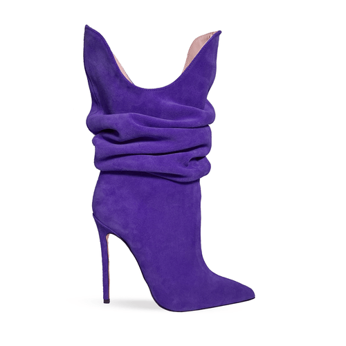 Shirred boot with pointed toe tubular suede with 100mm or 120mm stiletto heel