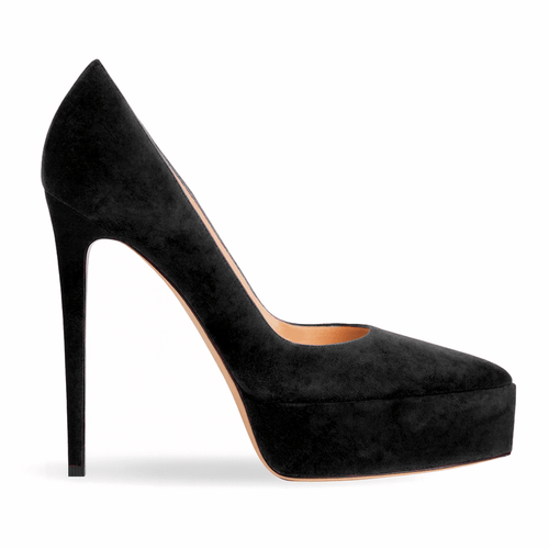 Pointed décolleté with suede upper, 3.5cm platform and 13cm heel