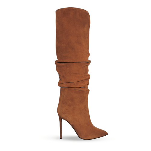 Pointed toe knee-high boot in suede with 100mm or 120mm stiletto heel