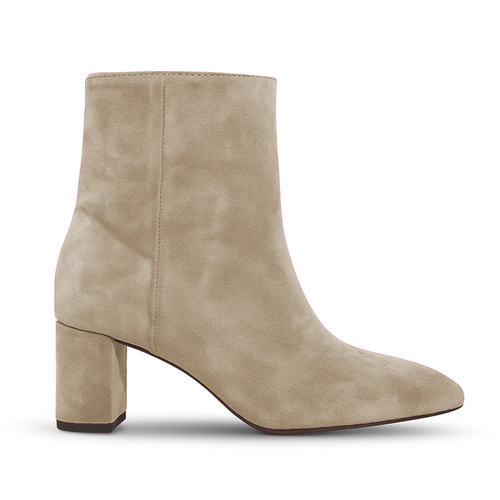 Pointed toe ankle boot in genuine suede with internal zipper and 70mm heel