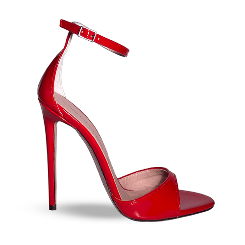 Round-toe sandal with patent leather strap and adjustable ankle strap, stiletto heel of 80mm, 100mm, or 120mm