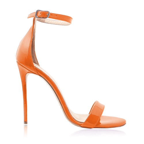 Round toe sandal with patent leather band with adjustable ankle strap, 100mm or 120mm stiletto heel