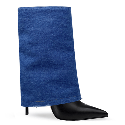 Pointed toe ankle boot in genuine leather with denim fabric turn-up and 100mm or 120mm stiletto heel