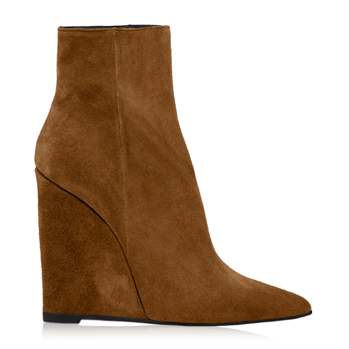 Suede pointed toe ankle boot with internal zip and 100mm wedge heel