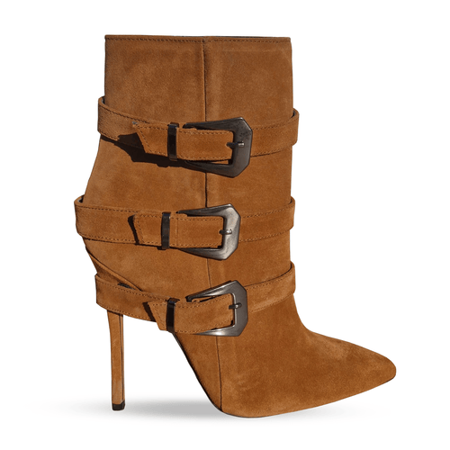 Botín de ante con punta en punta, 3 hebillas laterales y tacón de aguja de 100 mm o 120 mm