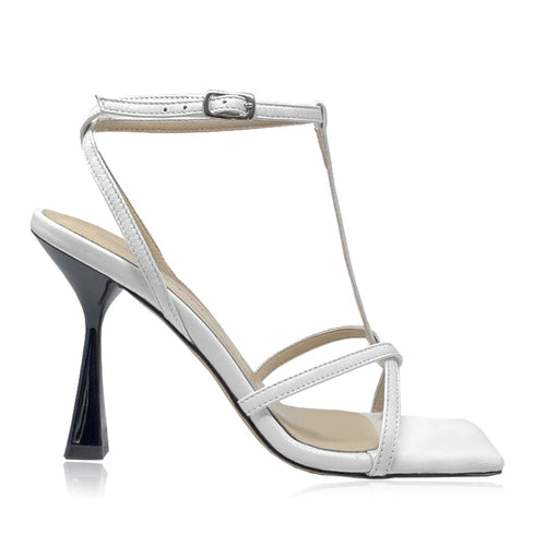 Sandalia de tiras T-Bar con punta cuadrada en piel con tira, tacón de 100mm