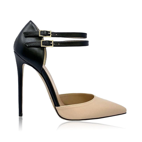 Escote bicolor puntera y talón con doble correa, en piel Tacón de aguja de 100 mm o 120 mm