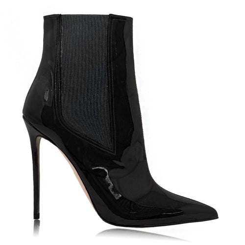 Bottines chelsea à bout pointu en cuir verni avec talon aiguille de 100 mm ou 120 mm