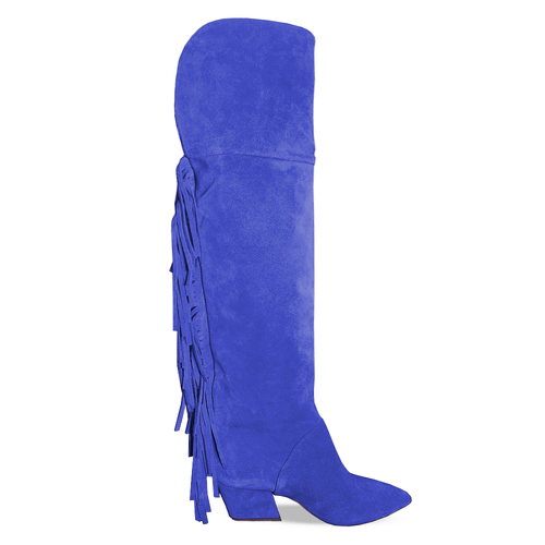 Botte tubulaire à bout effilé en cuir suédé avec franges et talon moyen de 60 mm