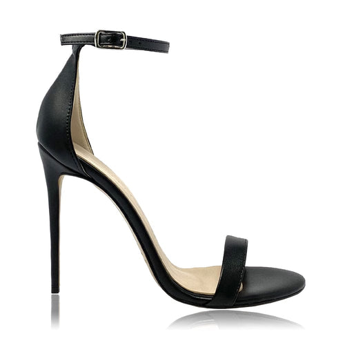 Sandale à bout rond avec bande en cuir avec bride de cheville réglable, talon aiguille de 100 mm ou 120 mm