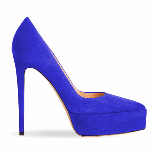 Décolleté à bout pointu avec tige en daim, plateforme de 3,5 cm et talon de 13 cm