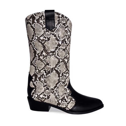 Botte de cowboy tubulaire à bout coulissant sous le mollet imprimé reptile avec talon de 40 mm
