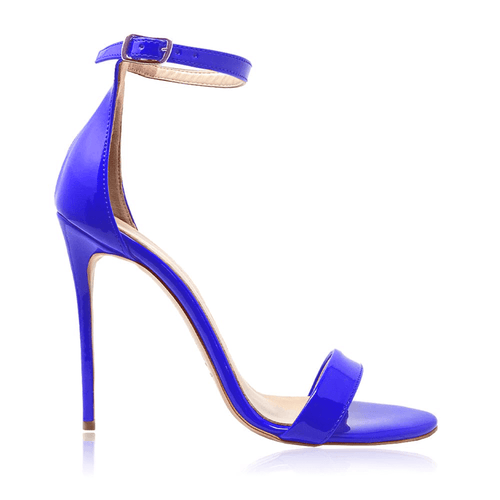 Sandale à bout rond avec bande en cuir verni avec bride de cheville réglable, talon aiguille de 100 mm ou 120 mm
