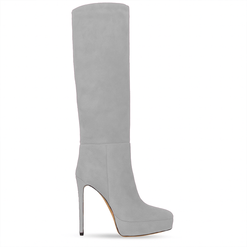 Botte tubulaire sous le genou en vrai daim avec talon aiguille et plateau de 2,5 cm
