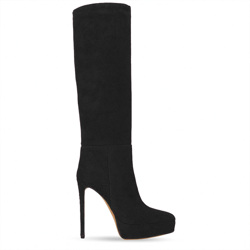 Botte tubulaire sous le genou en vrai daim avec talon aiguille et plateau de 2,5 cm
