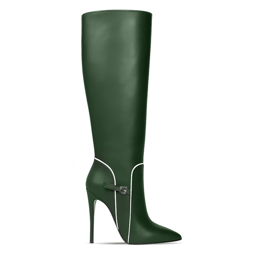 Stivale tubolare sotto al ginocchio in vera pelle con tacco a spillo da 80mm,100mm o 120mm