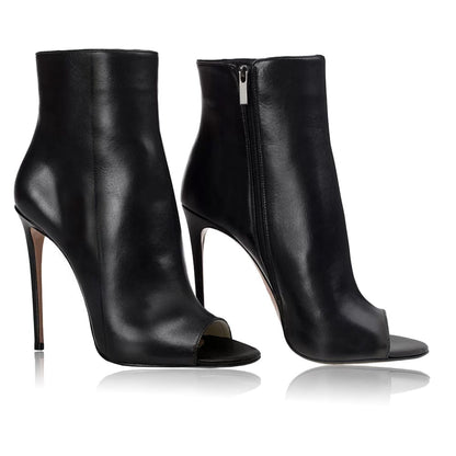 Stivaletto open toe in vera pelle con zip interna, tacco a spillo da 100mm o 120mm