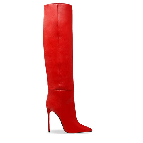 Stivale tubolare sotto al ginocchio in vera pelle con tacco a spillo da 100mm o 120mm