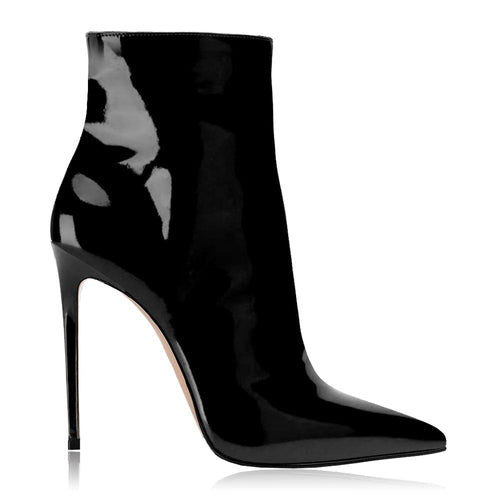 Stivaletto a punta sfilata in pelle verniciata con zip laterale e tacco a spillo da 100mm o 120mm