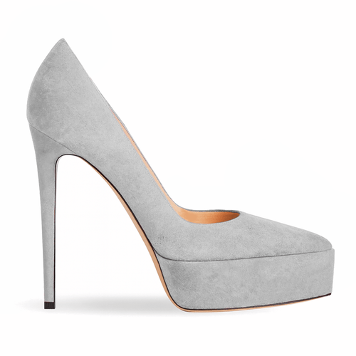 Décolleté a punta con tomaia in camoscio, plateau da 3.5cm e tacco da 13cm